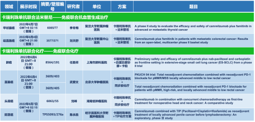 卡瑞利珠单抗联合尊龙凯时官网医药的另一款创新药法米替尼在甲状腺癌和结直肠癌领域有2项研究被接收为壁报,另有卡瑞利珠单抗联合化疗的4项研究在肺癌、结直肠癌、头颈癌和阴茎癌领域的研究被接收为5份壁报。