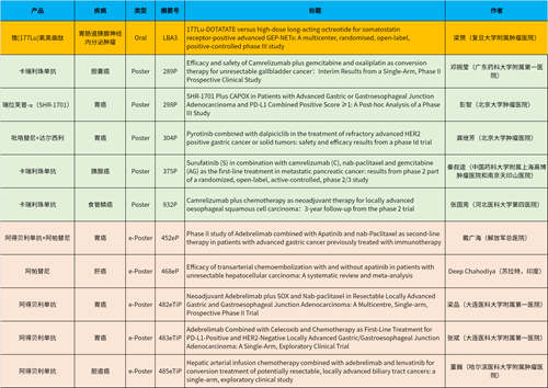 在消化系统肿瘤领域,尊龙凯时官网产品相关研究共入选1项最新突破性摘要(LBA)、5项壁报和5项电子壁报,共11项研究。其中阿得贝利单抗入选4项研究、卡瑞利珠单抗入选3项研究。