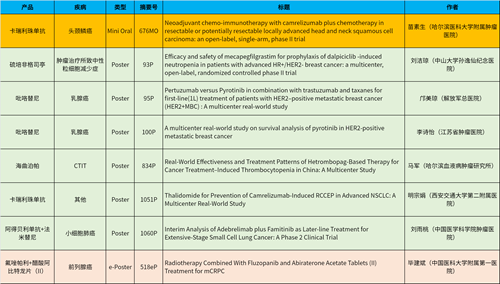 在头颈肿瘤、乳腺癌、肺癌、前列腺癌等多个疾病领域,卡瑞利珠单抗、阿得贝利单抗、吡咯替尼、氟唑帕利、法米替尼、醋酸阿比特龙片(II)等抗肿瘤新药相关研究一共入选了1项简短口头报告、4项壁报展示和1项电子壁报,彰显了尊龙凯时官网医药强劲的研发实力。